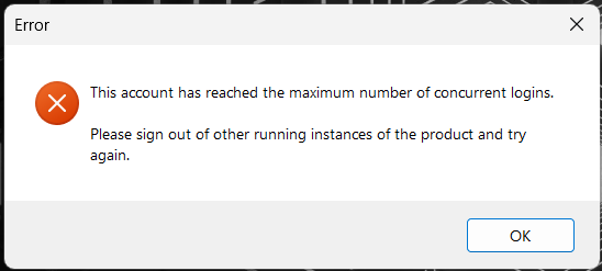 Bernina accounts are limited to three active users signed in at the same time. If a fourth user attempts to sign in, an error message will appear prompting them to sign out of another account before continuing.