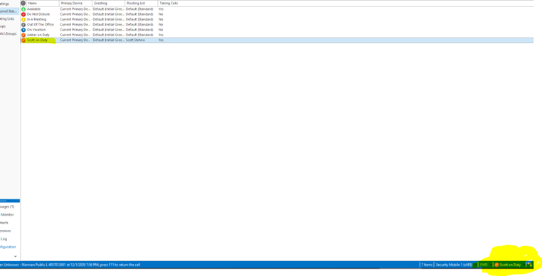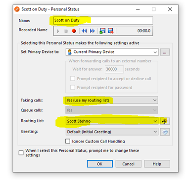 Type in Their First Name on DutyIn highlighted box (Check that Taking Calls is set to Yes) Then change the Routing List to use Their Name Click (OK)