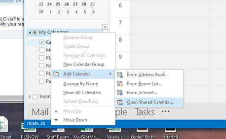 2. Right click on “You Calendars” and choose “Open Calendar”