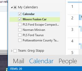 12. Under the My Calendars menu along the left of your Outlook Client, the vehicle calendar you have chosen should now appear along with your personal calendar. You can check/uncheck that calendar to view/not view the vehicle calendar as needed.
