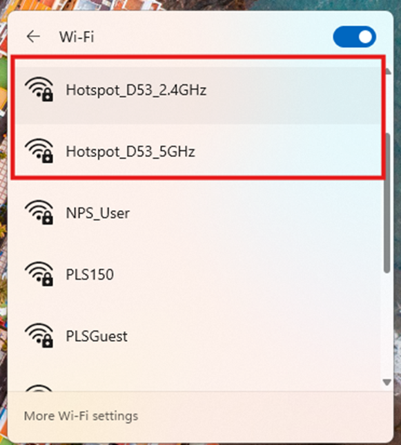 3. On your laptop navigate to the bottom right corner and click on the internet globe. There you should see the hotspot listed as a network to connect to.